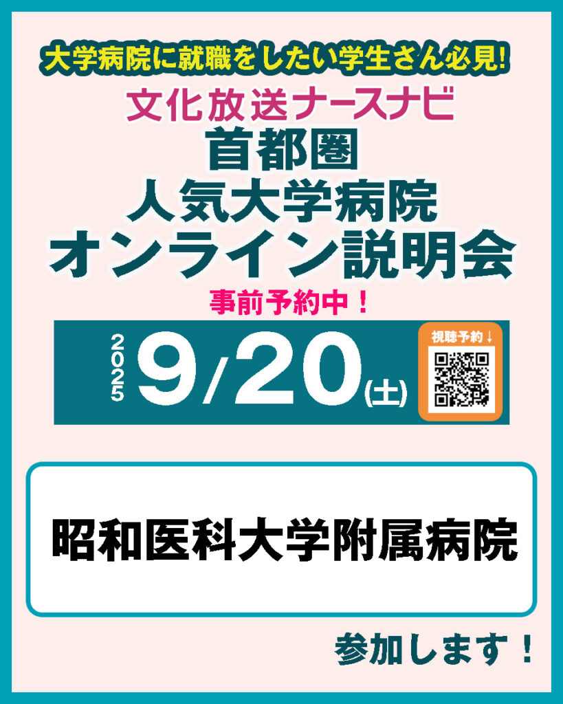 9月20日(土)に文化放送ナースナビ主催のオンライン合同就職説明会に参加致します。