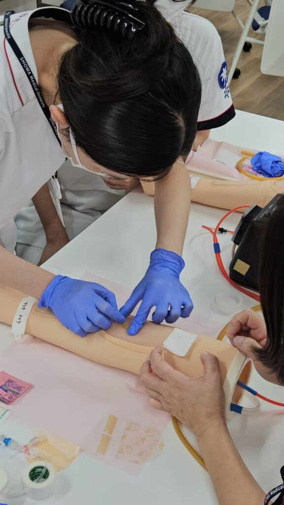 7月最後の演習は「静脈注射」でした。研修も難しくなってきましたが、みんな一生懸命取り組んでいました。