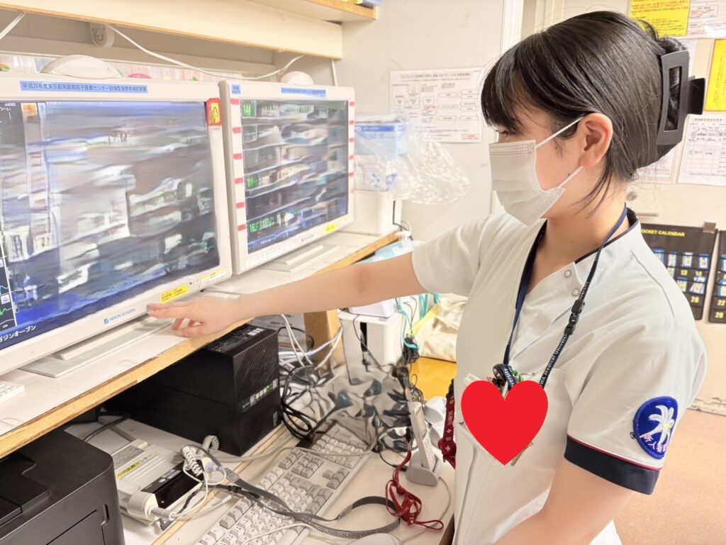 👆患者さんのモニター確認をします。