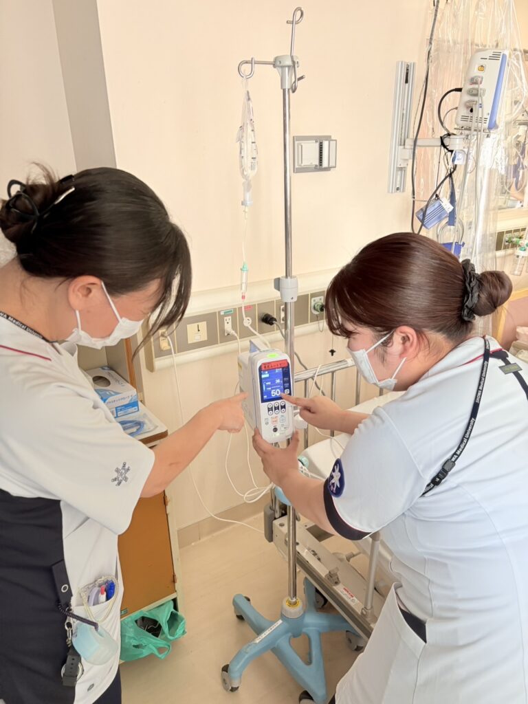 👆新人教育責任者と一緒に点滴のダブルチェック!