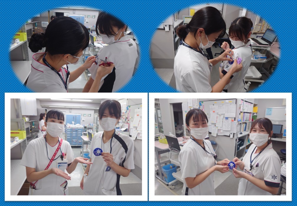 当院では、新人看護師・助産師が他職種や周囲からのサポートを受けやすいよう、入職から半年間は「新人バッジ」を着用しています。新人たちはこのバッジに守られているように感じていたようで、外すことに少し不安を覚える声も聞かれました。